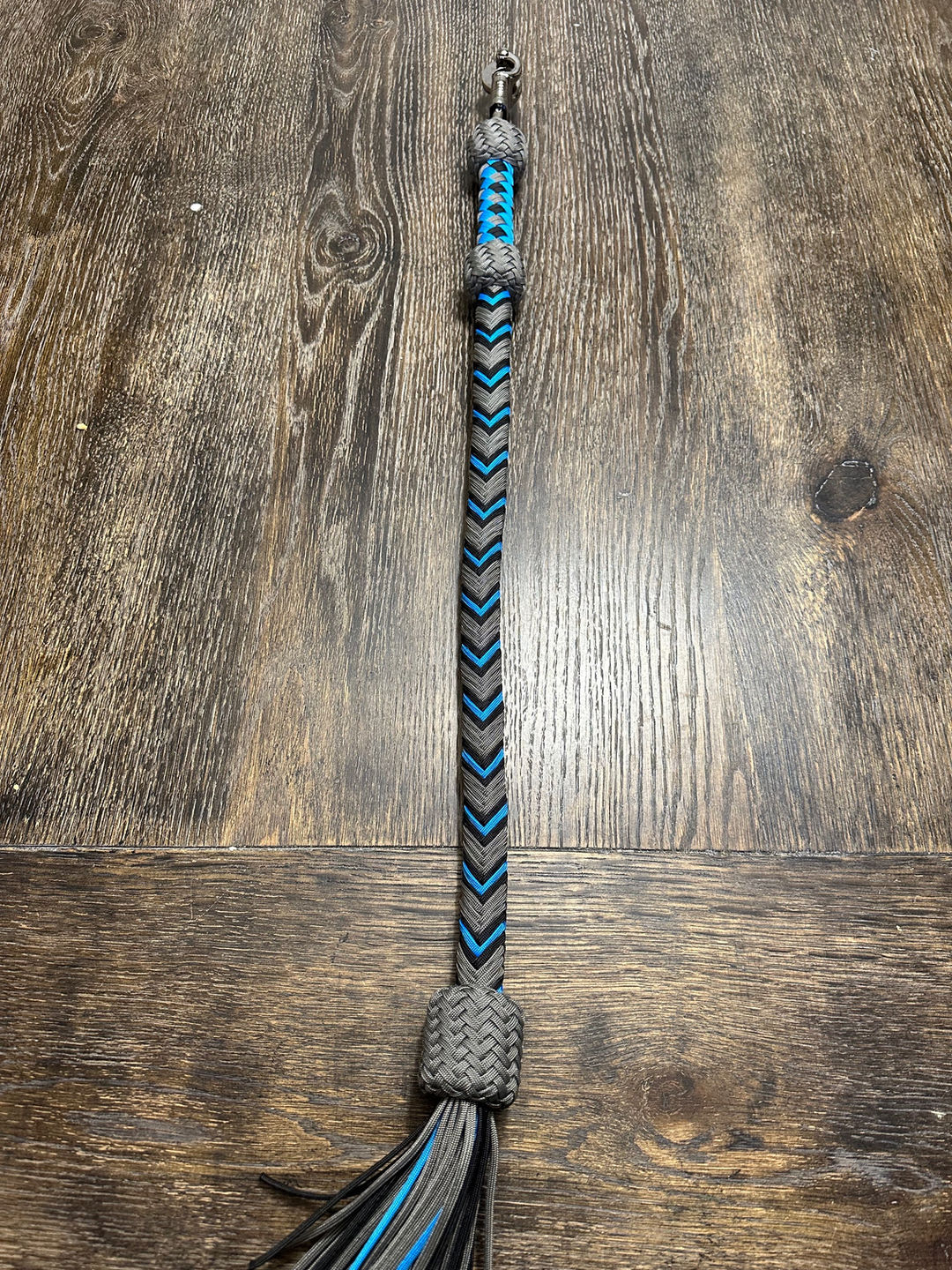 Introducing the Twisted Signature Rein—one of my personal favorites to craft by hand! Featuring a rich charcoal gray base, with a color of your choice expertly woven in between sleek black accents to give it that fantastic, eye-catching look.